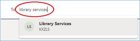 To join the chat sessions, find us on Microsoft Teams by opening a new chat room, and selecting Library Services in the To: field.